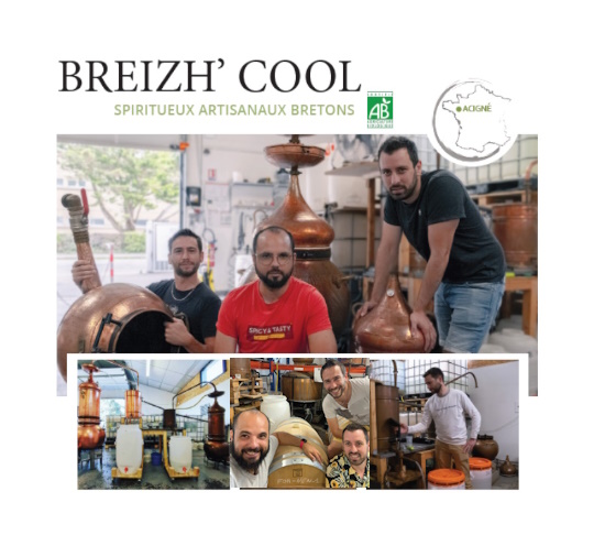 Distillerie artisanale bretonne fondée en 2016 près de Rennes, Breizh’Cool est spécialisée dans la production de spiritueux et liqueurs bio. La distillerie met à l’honneur des produits de qualité, bio et favorisant les circuits courts. Précise dans ses méthodes, elle utilise le même procédé de fabrication que celui utilisé pour les huiles essentielles : l’extraction à la vapeur.